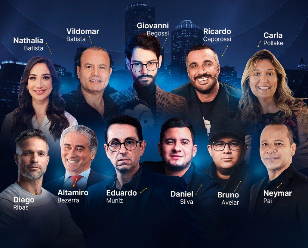 - Neymar Pai: compartilhará sua jornada inspiradora, desde suas origens humildes até se tornar uma figura de destaque no mundo dos negócios. Ele vai revelar como moldou a carreira de um dos maiores ícones do futebol mundial, as lições aprendidas ao longo do caminho e os segredos de sua habilidade empresarial, com ênfase em seus investimentos na construção civil.